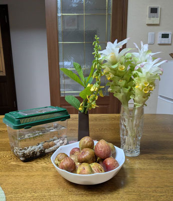 02日 9月 2025 黄金狸豆の花が咲きました♡ ベビーマラカスの花が咲きました。 マメ科タヌキマメ属(和名は黄金狸豆)一年草。 おふくの家に来られている傾聴ボランティアさんからいただいたのですが、茶色く乾燥したサヤをふると、名前の通り、本当にマラカスのようにシャカシャカと音がしました♪ サヤの中には、小さな小さな黒いハート型のタネがたくさん入っていました♡ 入居者の方と一緒にタネまきしてから2か月あまり。 酷暑のなか、すくすく元気に大きくなって、さわやかな黄色い花をつけてくれました。 これから、”マラカス”ができていくのが楽しみです。 そして、今年もイチジクが豊作です♪ おばあさまたち、大喜びで毎日食べておられます。 tagPlaceholderカテゴリ: おふくの家, 2025年9月